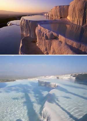 به زبان ترکی این نام یعنی: قلعه پنبه ای و به آسانی می توان فهمید که چرا چنین نامی به آن اطلاق شده است. همچنین این شگفتی طبیعی قسمتی از سایت شهر هایراپولیس (Hierapolis) در سوریه است و در طی قرنها این دو به دلیل نزدیکی یکی شده اند. در واقع برخی از مقبره های قدیمی در قبرستان شهر بخشی از منظره را تشکیل میدهد. این سایت دارای سنگهای تراورتن و چشمه های آب گرم است. سنگهای تراورتن ظاهری متحدالمرکز دارند و با رنگ سفید حریرگونه جلوه ای روحانی خلق کرده اند. چشمه های آب گرم در دهانه ها دارای رسوبات کربنات کلسیم هستند که موجب تشکیل سازه های خارق العاده با ظاهری ارگانیک شده اند.