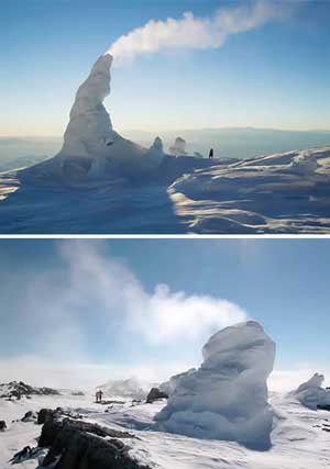 کوه اربس یکی از فعالترین آتشفشانهای زمین است. این کوه تقریبا 4 کیلومتر بالاتر از سطح زمین است و بخاطر دریاچه گدازه های مذاب واقع در دهانه آتشفشانی در قله، میان مجموعه های آتشفشانی مشهور است. بخار داغ آتشفشانی که از ترکها و شکافهای صخره های آتشفشانی بیرون می آید سیستم پیچیده ای از غارهای یخی در اطراف کوه خلق کرده است.